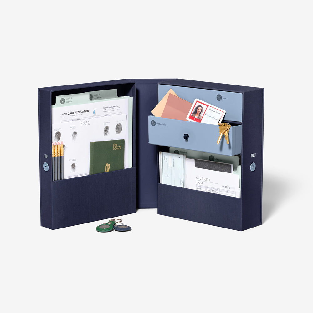 If you've ever had a loved one suddenly unavailable for any reason, you know the panic of trying to locate important items like keys or documents without their guidance. Having essential items in one go-to place makes it easier for you and those around you. Because the last thing anyone wants to do in an emergency is to go rifling through drawers. This bundle comes with everything you need to be prepared for the unexpected with the Folio, Organizer Box, and Label Sheets for both.