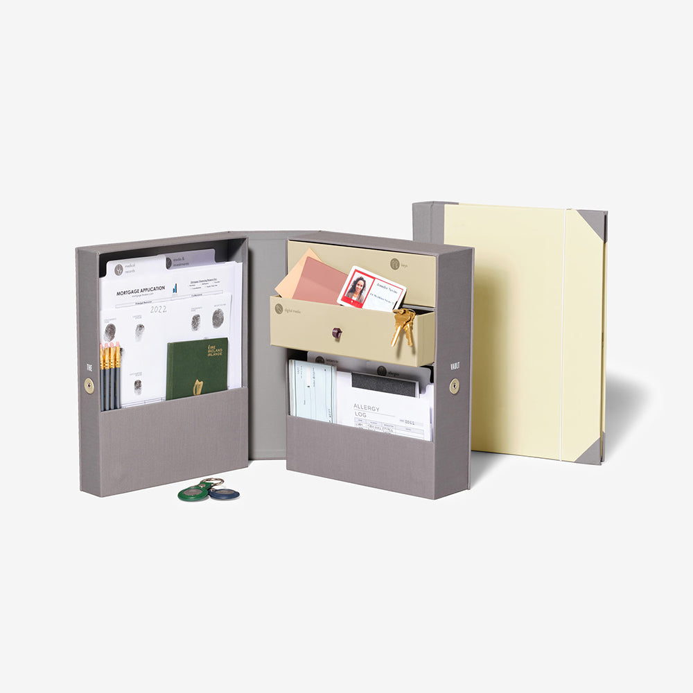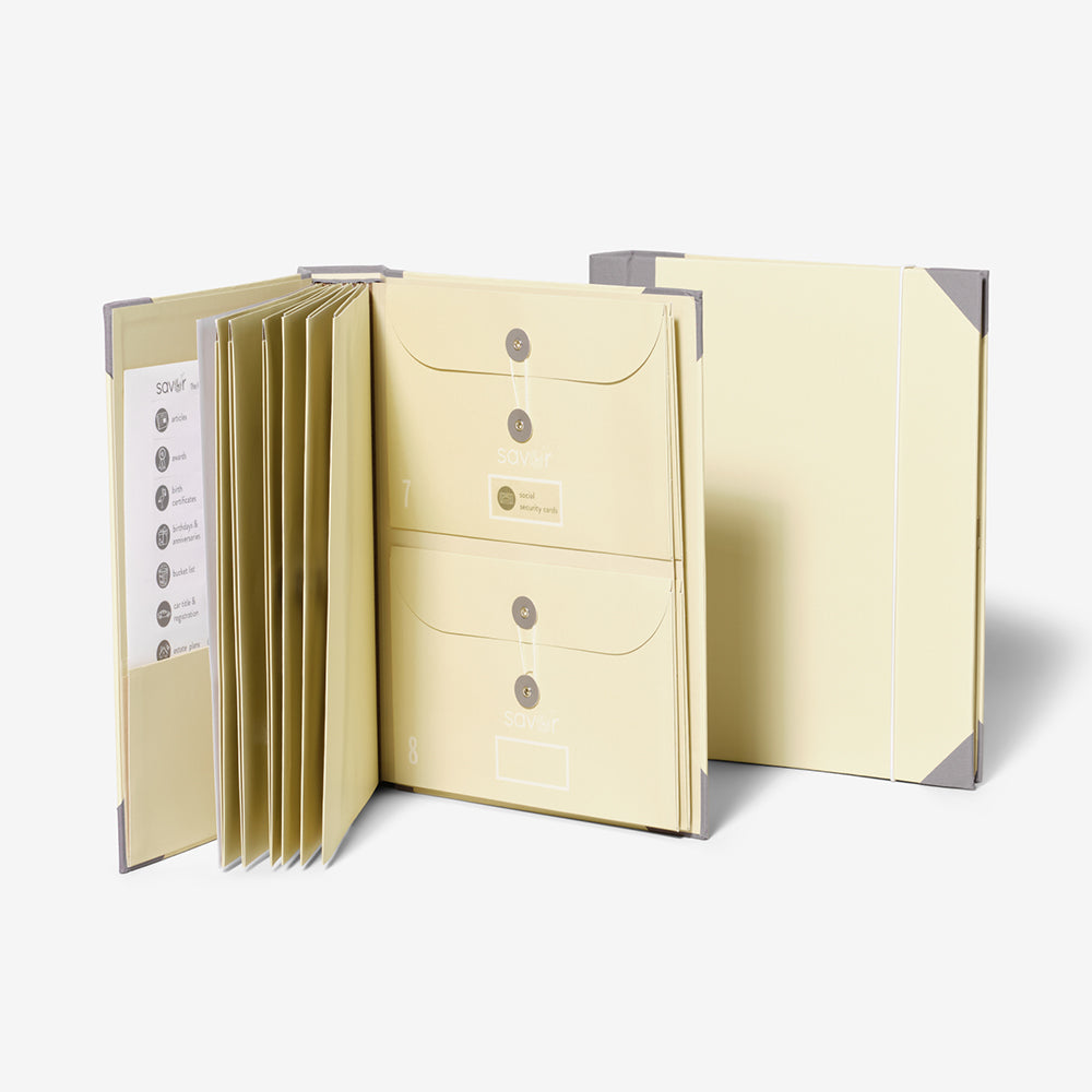 If you've ever had a loved one suddenly unavailable for any reason, you know the panic of trying to locate important items like keys or documents without their guidance. Having essential items in one go-to place makes it easier for you and those around you. Because the last thing anyone wants to do in an emergency is to go rifling through drawers. This bundle comes with everything you need to be prepared for the unexpected with the Folio, Organizer Box, and Label Sheets for both.
