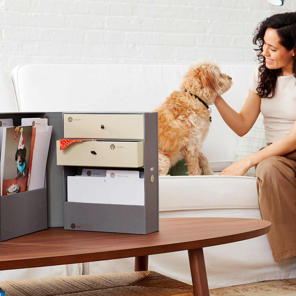 Our pets are another family member. Let's face it: The favorite family member. And our memories with them are as treasured as any we have, deserving a special home. Whether it's as a pet memorial box to preserve a beloved pet's collar and favorite toys, or it's the one place to find medical and adoption records when you head to the veterinarian, the Vault Pet Keepsake Box keeps these important items safe and fit for display.