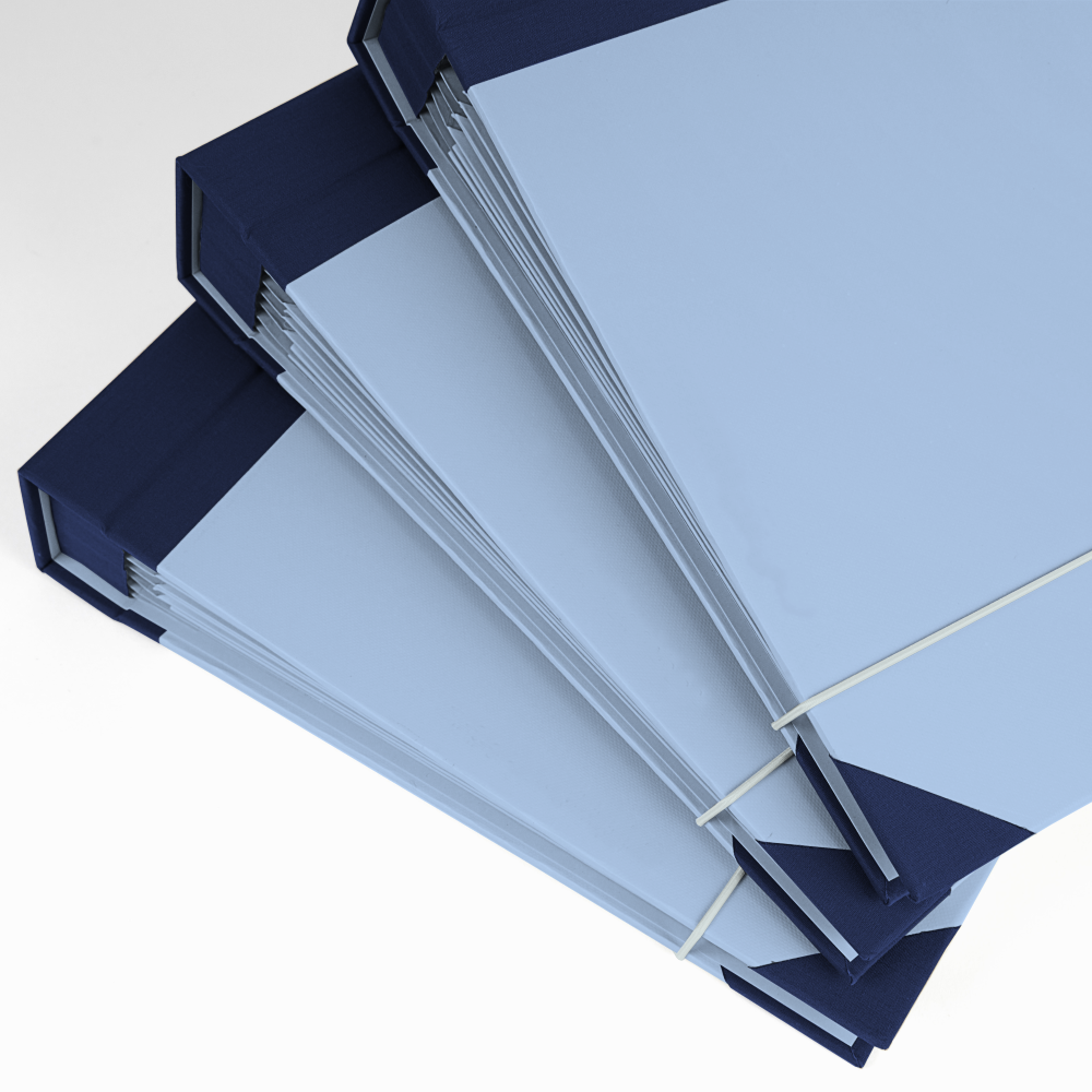 - High quality materials including custom-dyed book cloth, reinforced edges, and acid-free paper.